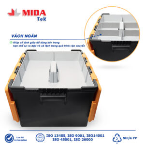 – Khay và thùng MIDATEK KB4030 Đen Cam có nắp gọn nhẹ và xếp chồng được: Tiết kiệm diện tích và chi phí vận chuyển