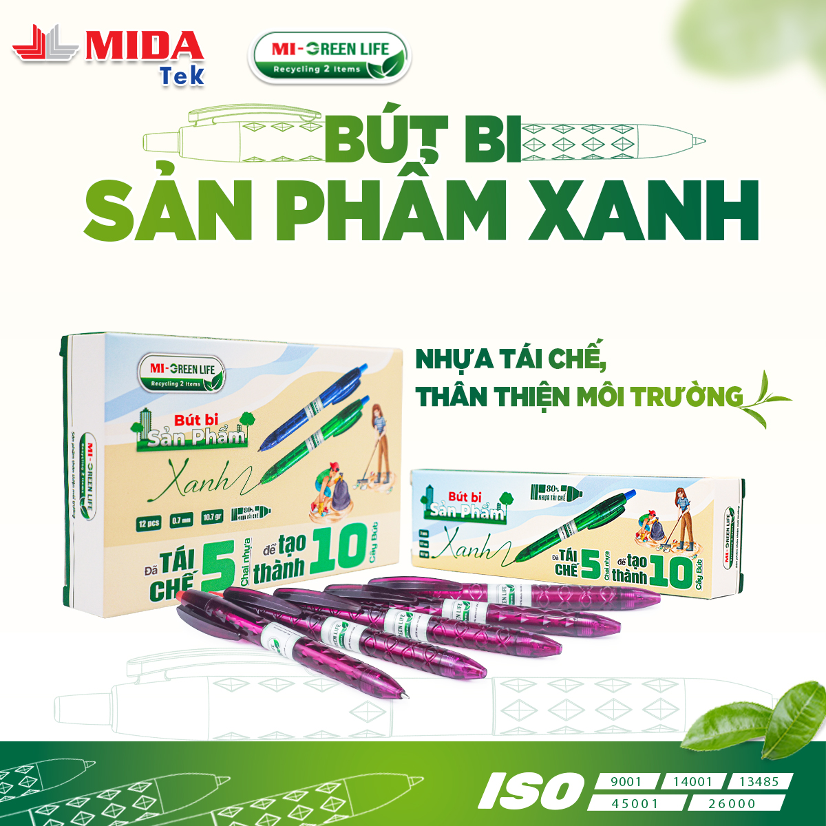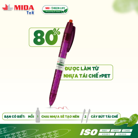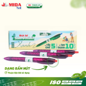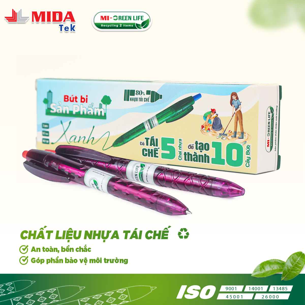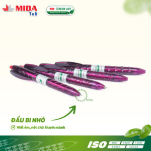 Bút bi đỏ MIDATEK 3 cây/ hộp, nguyên liệu nhựa tái chế