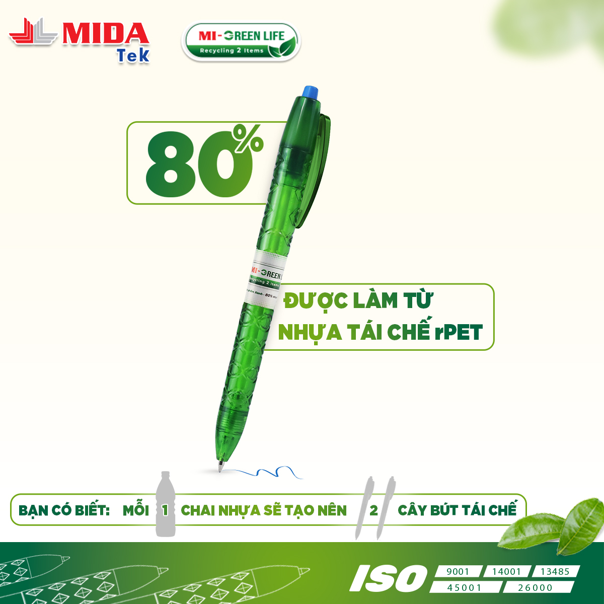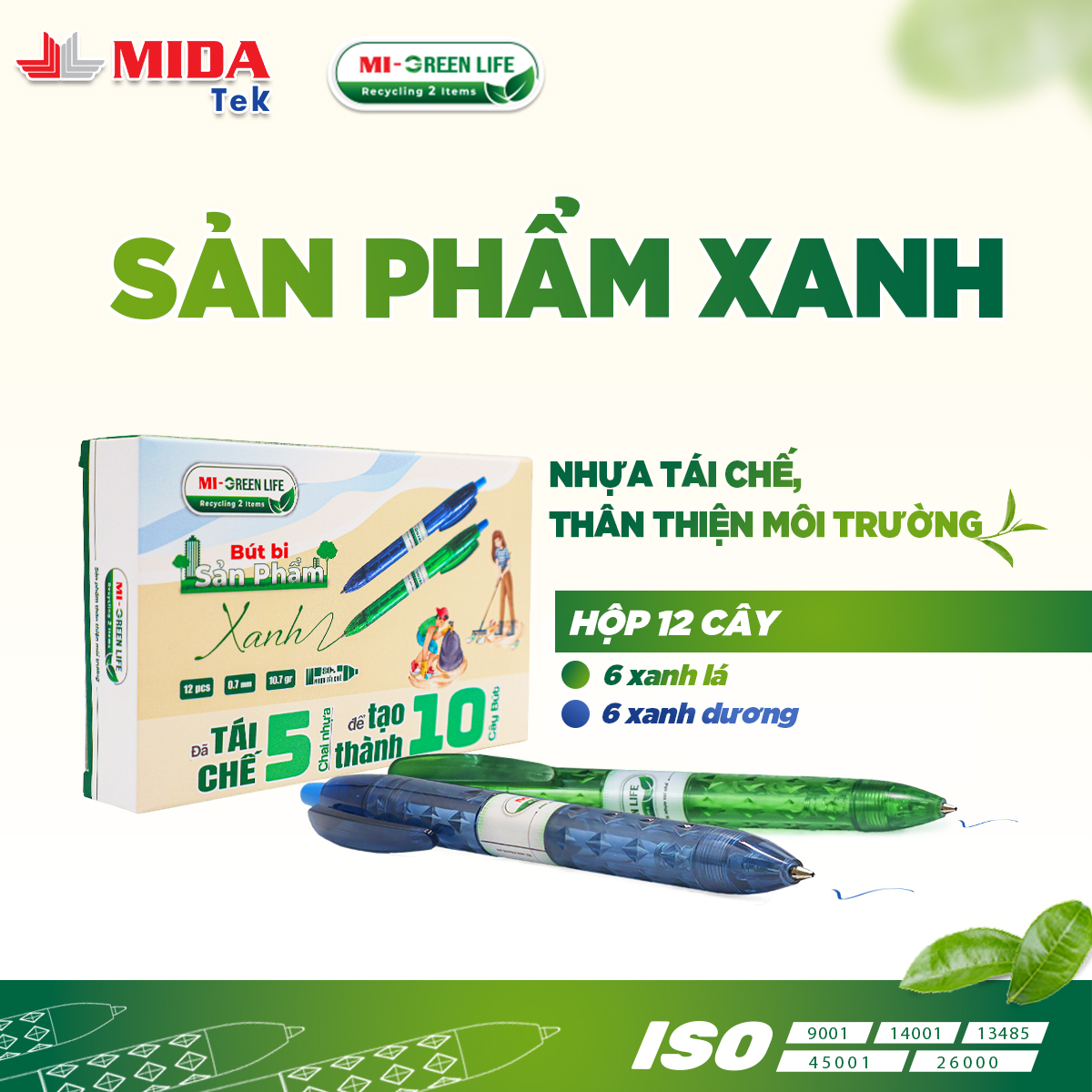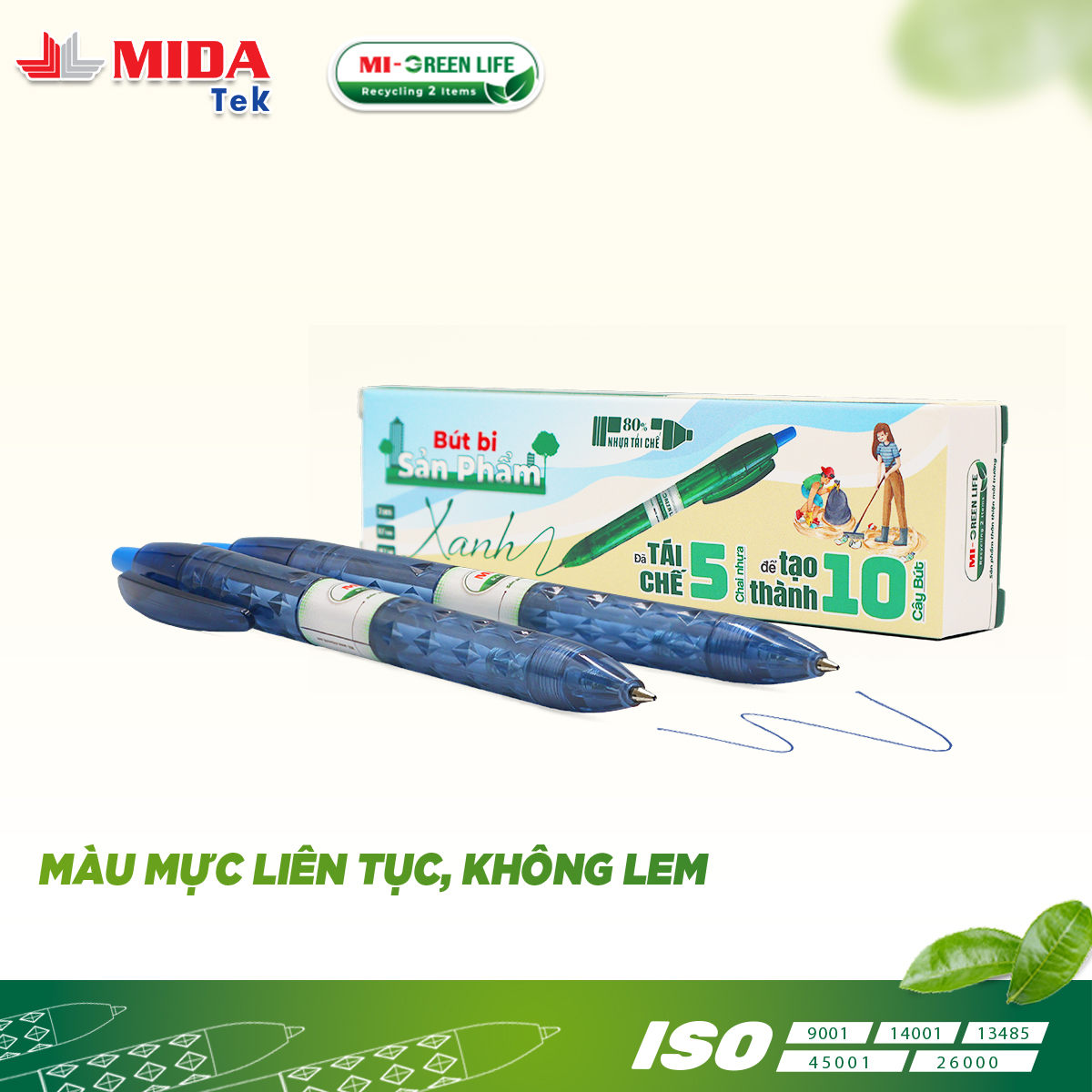 Bút bi sản phẩm xanh MIDATEK ra đời với sứ mệnh đem đến sự tiện lợi nhưng vẫn góp phần bảo vệ môi trường